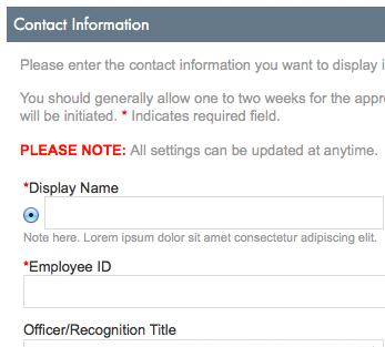 Note is 11px / #999999 (use "formNote" class)